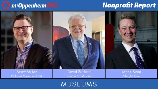 Host Mark Oppenheim interviews guests: Tacoma Art Museum Executive Director David Setford; Albright-Knox Art Gallery Director Janne Sirén; and Philbrook…